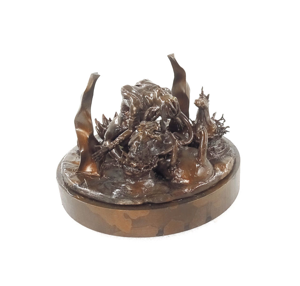 The sculpture’s textures — flowing tendrils, earthen weight, coiled organic forms — pulse with life’s eternal rhythm: growth, decay, and renewal. It stands as both portal and mirror, inviting us to gaze inward, confront the hidden currents of the soul, and recognize that true transformation begins within.